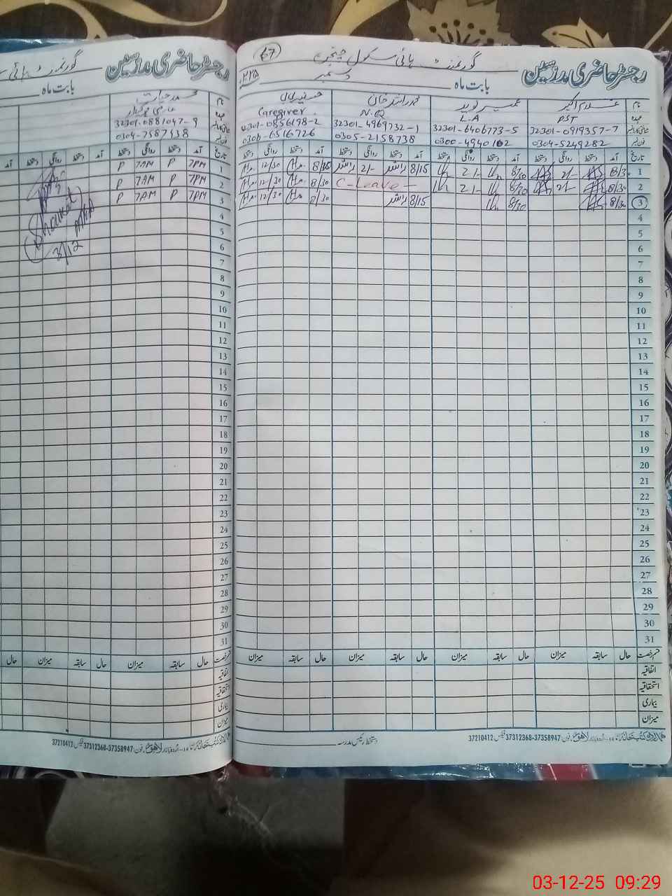 | CNIC | Full Name | Designation | R/C | Absence During Last Calender Month |