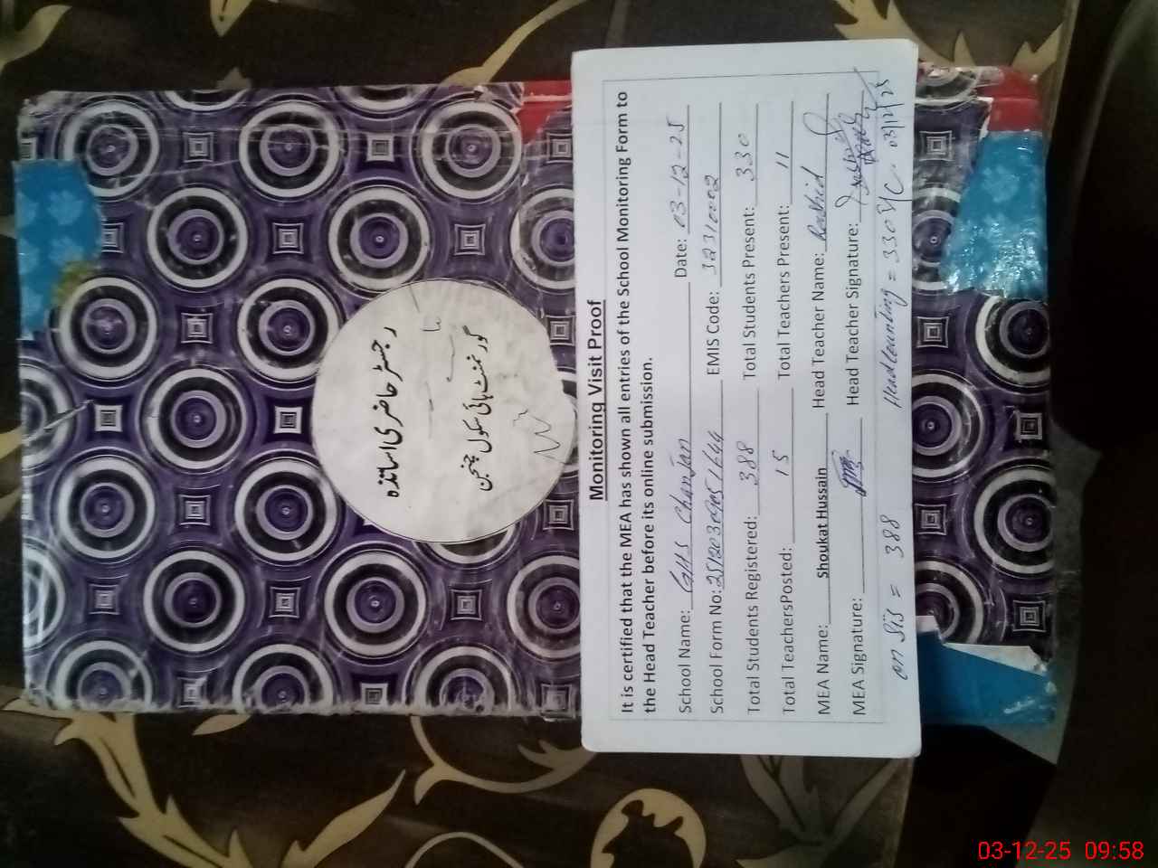 | Attendance Register | Head Teacher | MEA with School | Visit Proof |