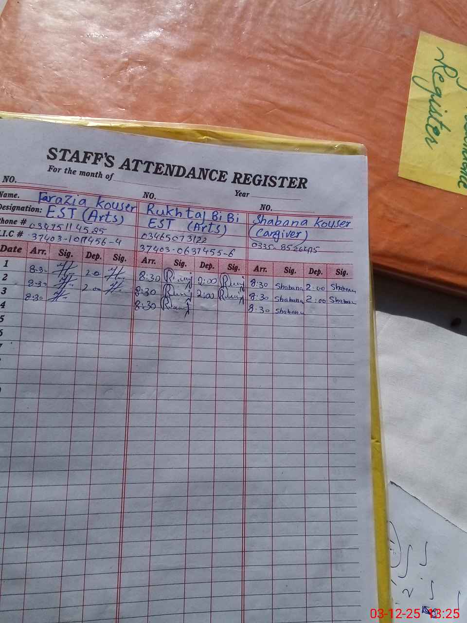 | Name: AN**** SH**** Designation: (School Headmaster's/Headmistress's) PST ARTS Phone/Cell Number: 03**** |