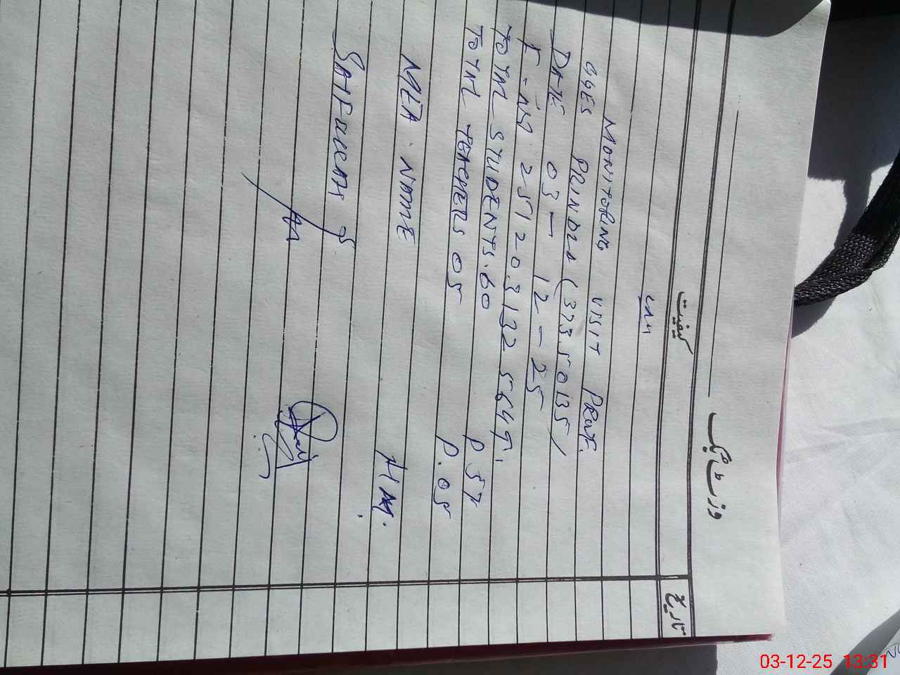 | Monitoring Date: 03-12-2025 | Start Time: 03-12-2025 01:11 PM | End Time: 03-12-2025 01:31 PM | Name of MEA: Sa**** | |