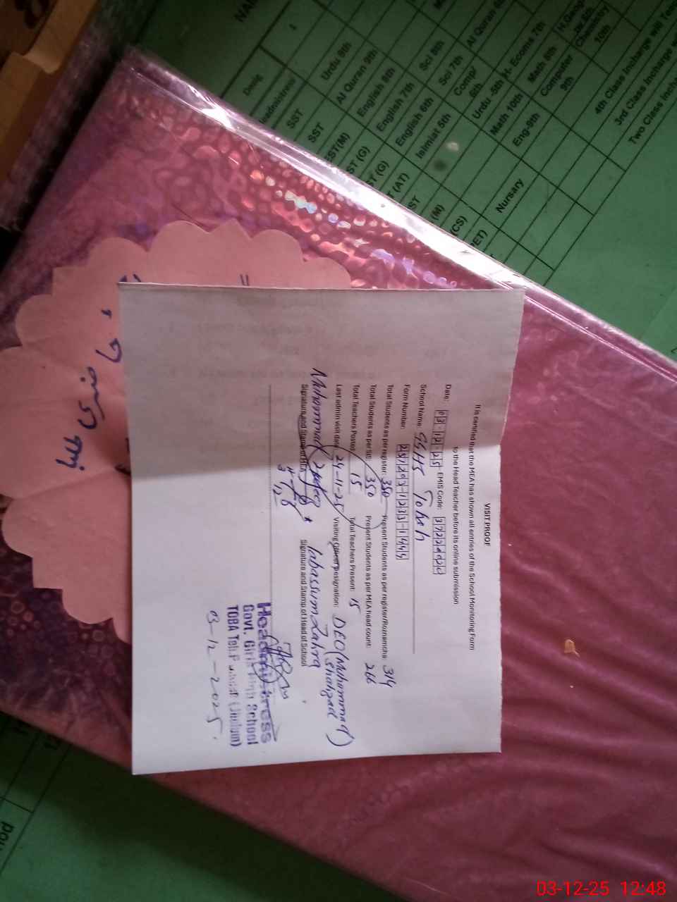 | Certified that this School was Inspected by the Undersigned MEA/DMO Today and the Information Stated Above is as Per Record. | |||||