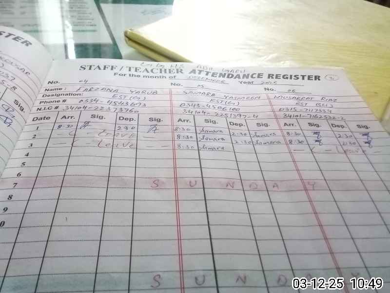 | CNIC | Full Name | Designation | R/C | Absence During Last Calender Month |