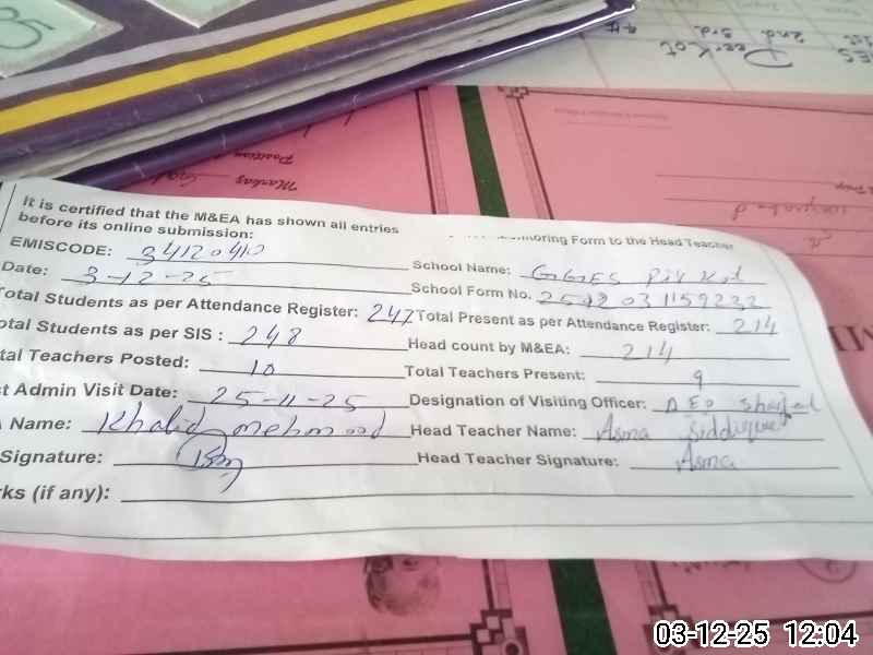 | EMIS Code: 34120410 | Name of School: GGES PIR KOT | |||