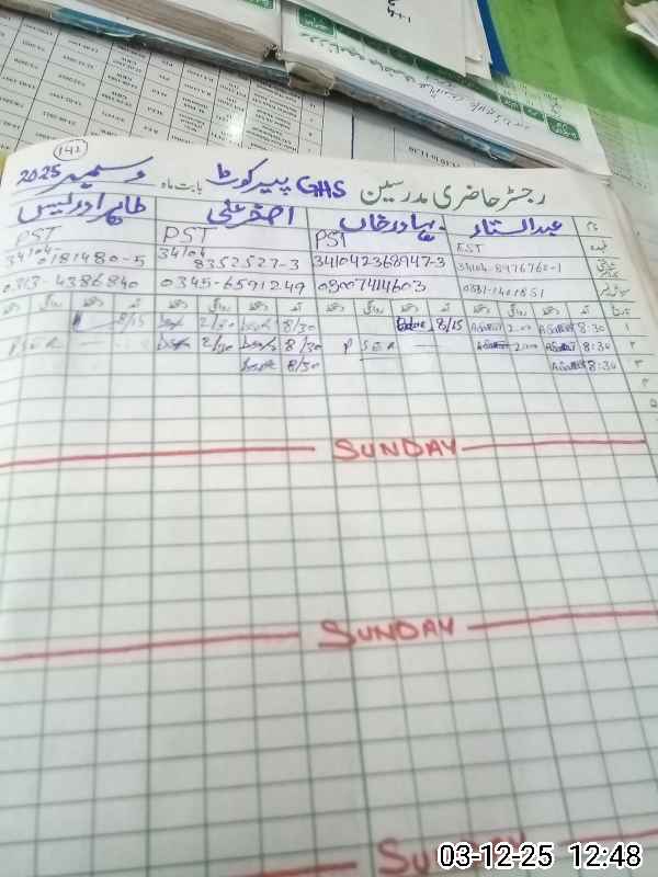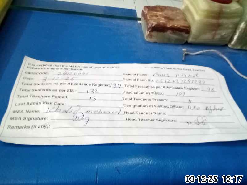 | EMIS Code: 34120046 | Name of School: GHS PIR KOT | |||