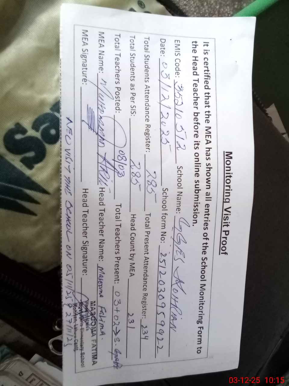 | Name: Ma**** Fa**** Designation: (School Headmaster's/Headmistress's) SST Phone/Cell Number: 03**** |
