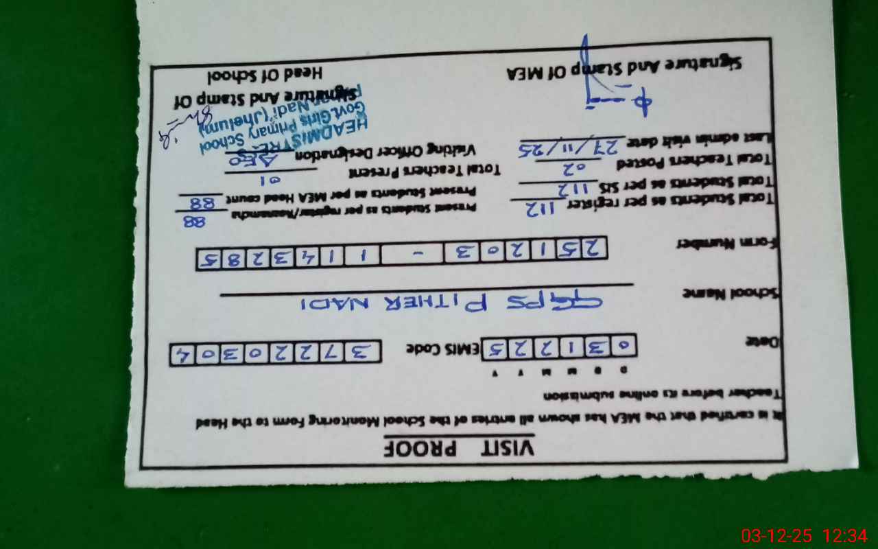 | Attendance Register | Head Teacher | MEA with School | Visit Proof |