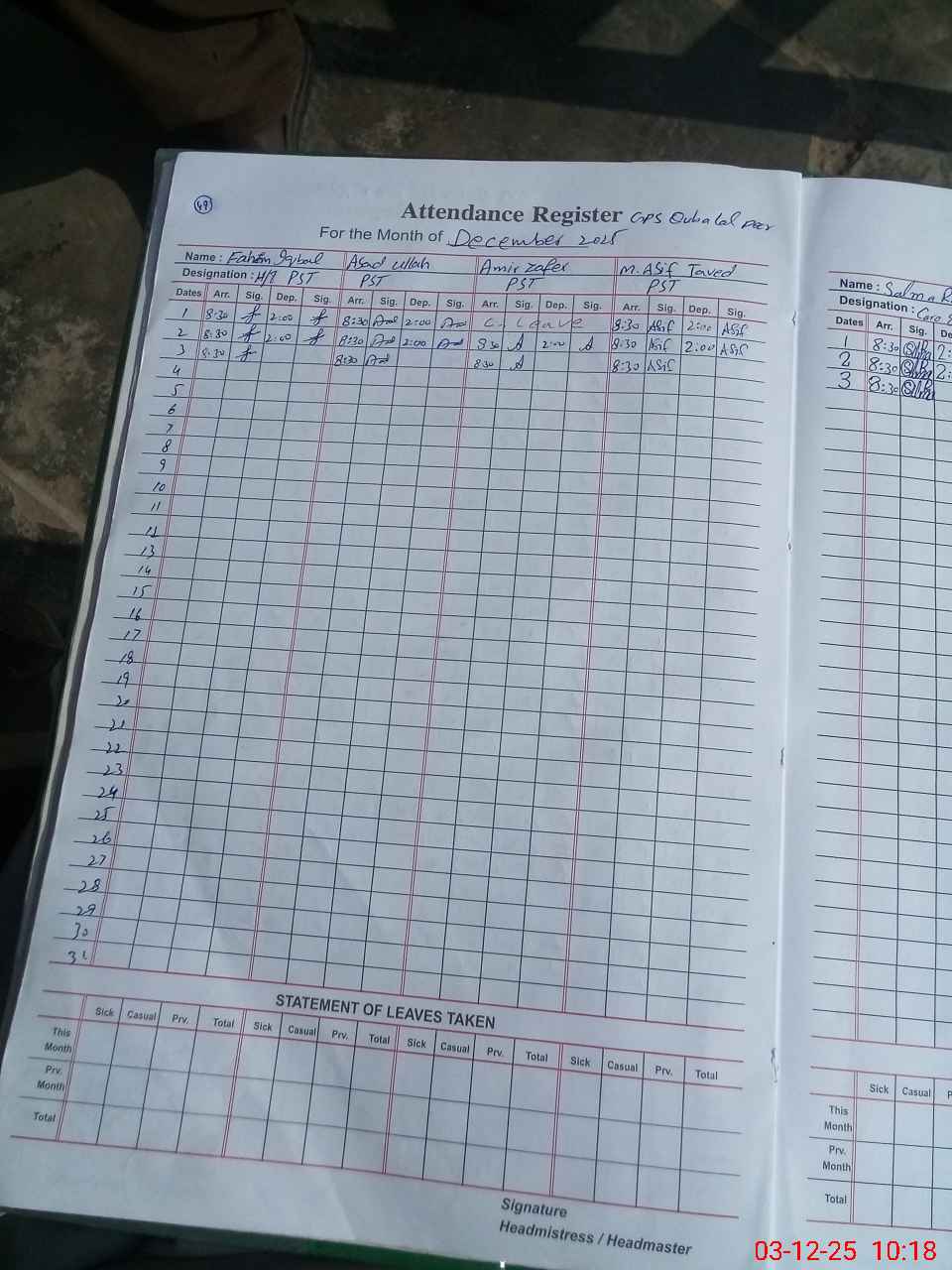 | Name: FA**** IQ**** Designation: (School Headmaster's/Headmistress's) PST Phone/Cell Number: 03**** |