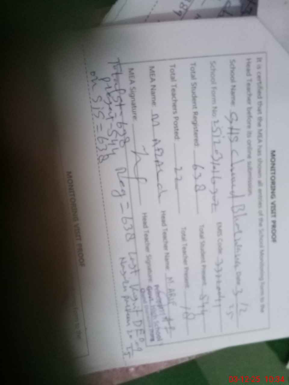 | Certified that this School was Inspected by the Undersigned MEA/DMO Today and the Information Stated Above is as Per Record. | |||||