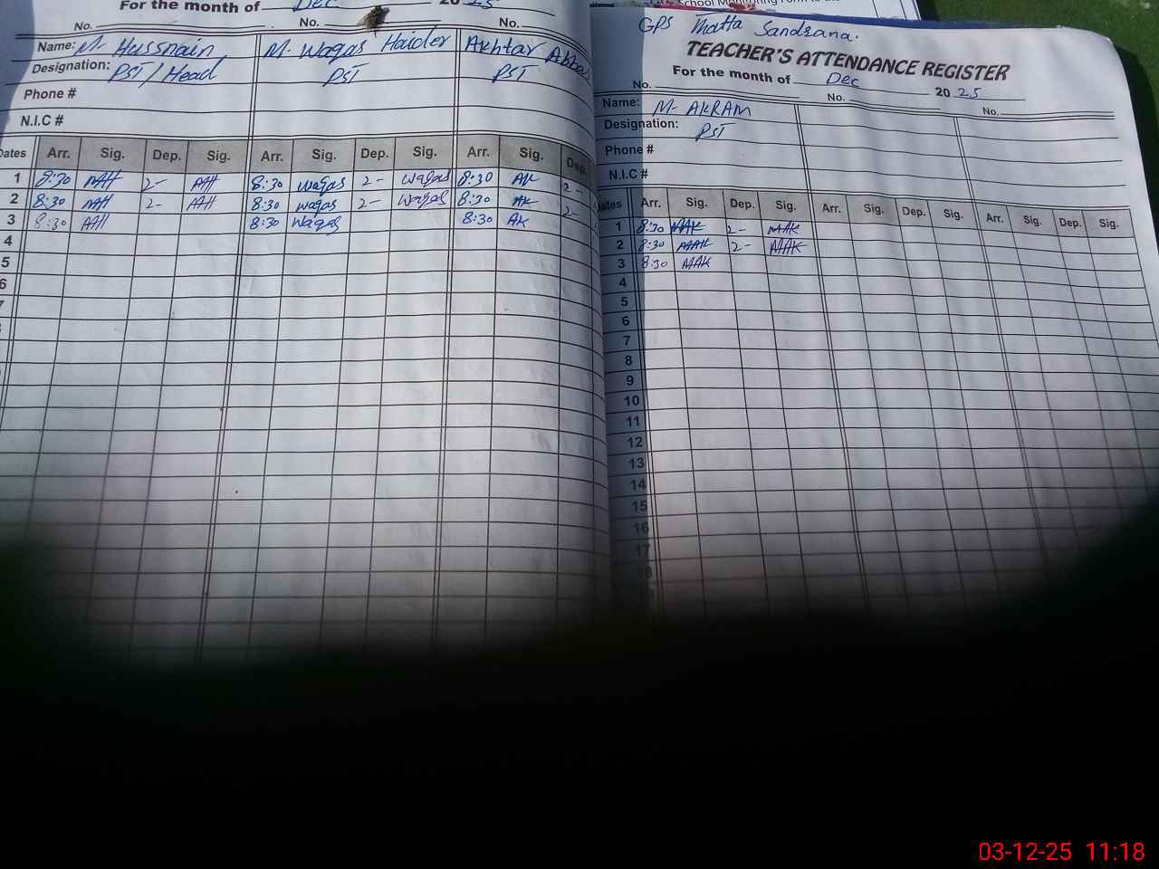 | Name: Mu**** Ha**** Designation: (School Headmaster's/Headmistress's) PST Phone/Cell Number: 03**** |