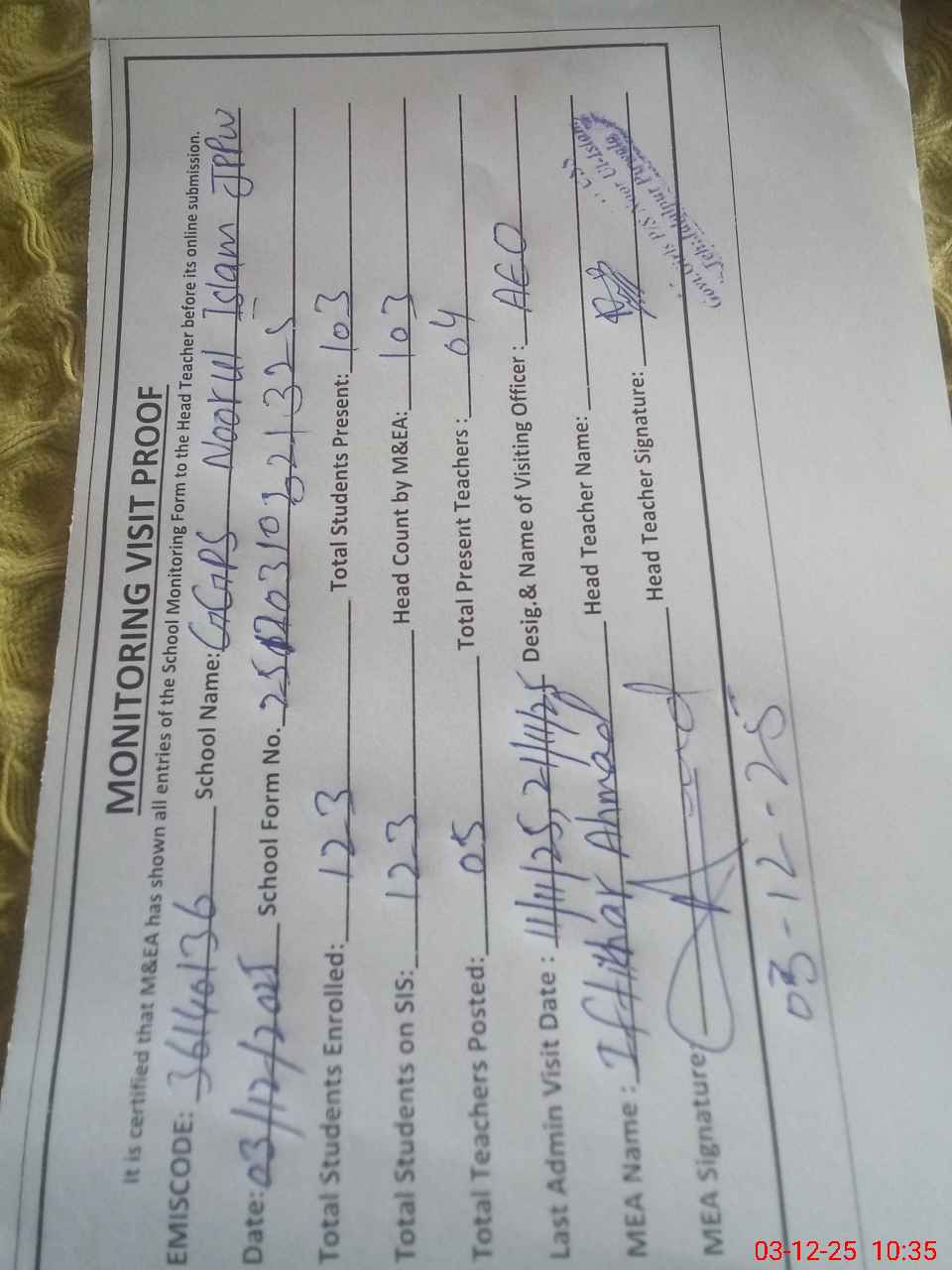 | EMIS Code: 36140136 | Name of School: GGPS NOOR-UL-ISLAM JALALPUR PIRWALA | |||