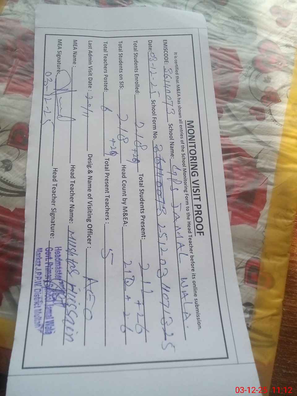 | EMIS Code: 36140073 | Name of School: GPS JAMAL WALA P/O JALALPUR PIR WALA | |||