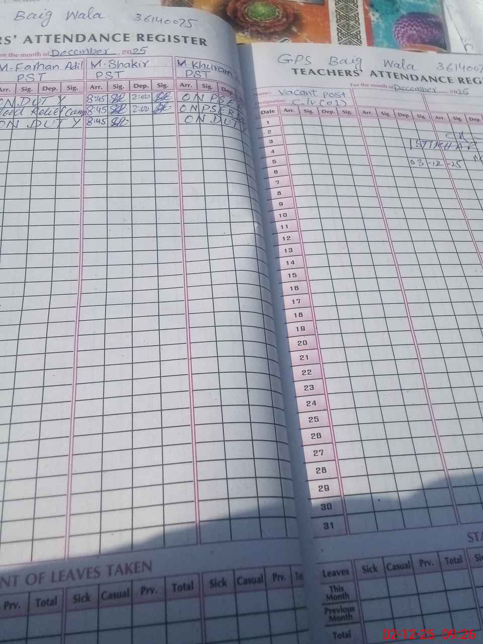 | EMIS Code: 36140075 | Name of School: GPS BAIG WALA MOZA P/O JALAL PUR PIR WALA | |||