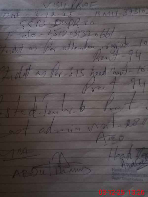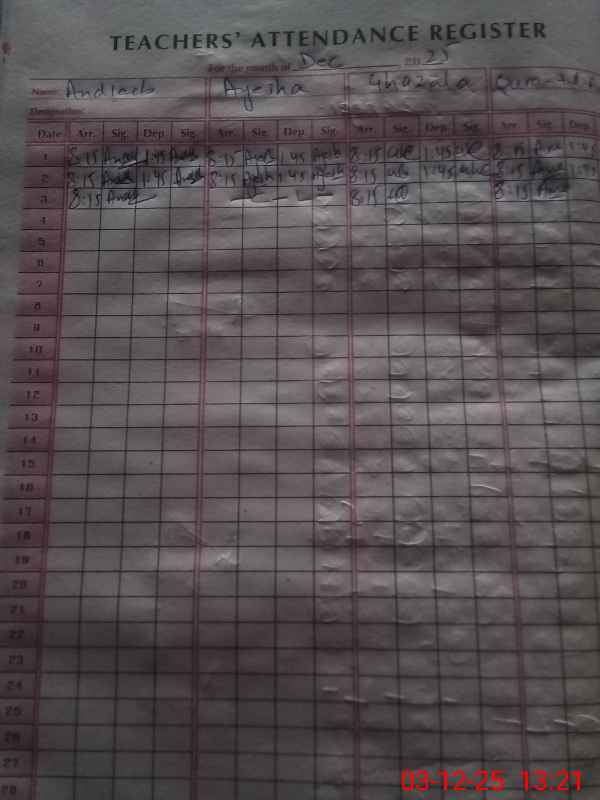 | Attendance Register | Head Teacher | MEA with School | Visit Proof |