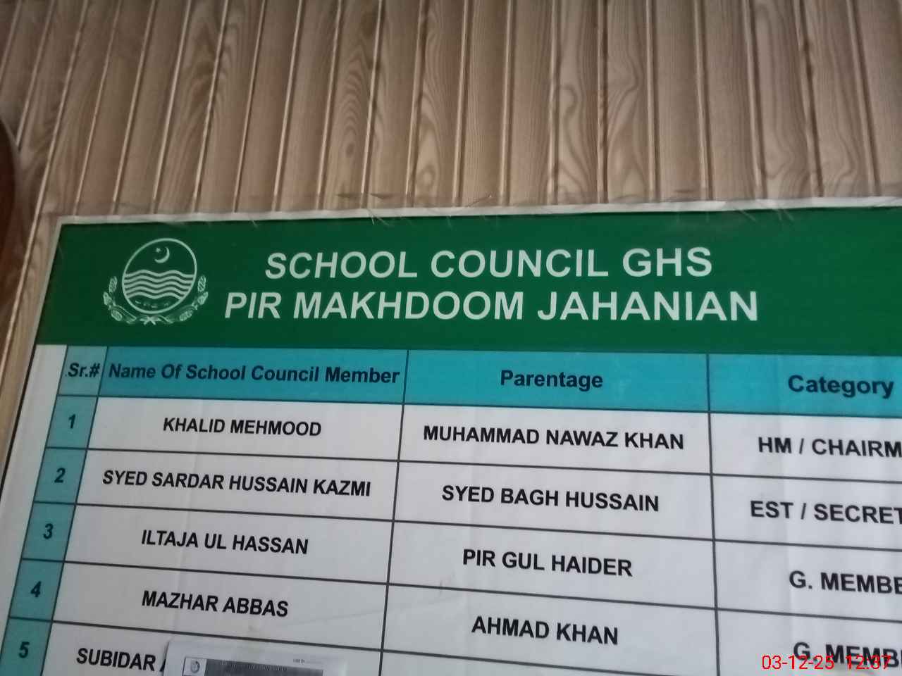 | EMIS Code: 37430016 | Name of School: GHS PIR MAKHDOOM JAHANIAN | |||