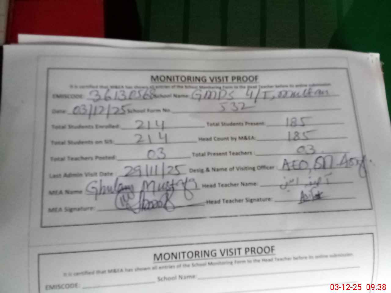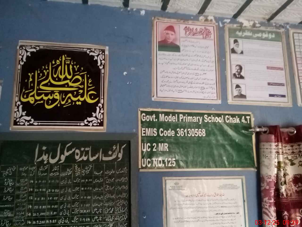 | EMIS Code: 36130568 | Name of School: GMPS CHAK 4-T P/O NO.1 MR | |||