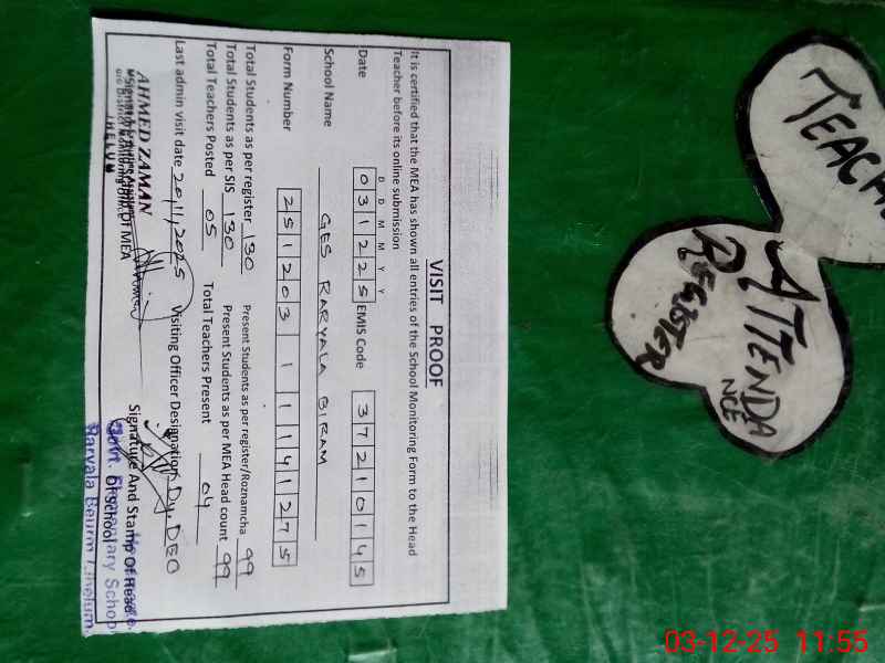 | Attendance Register | Head Teacher | MEA with School | Visit Proof |