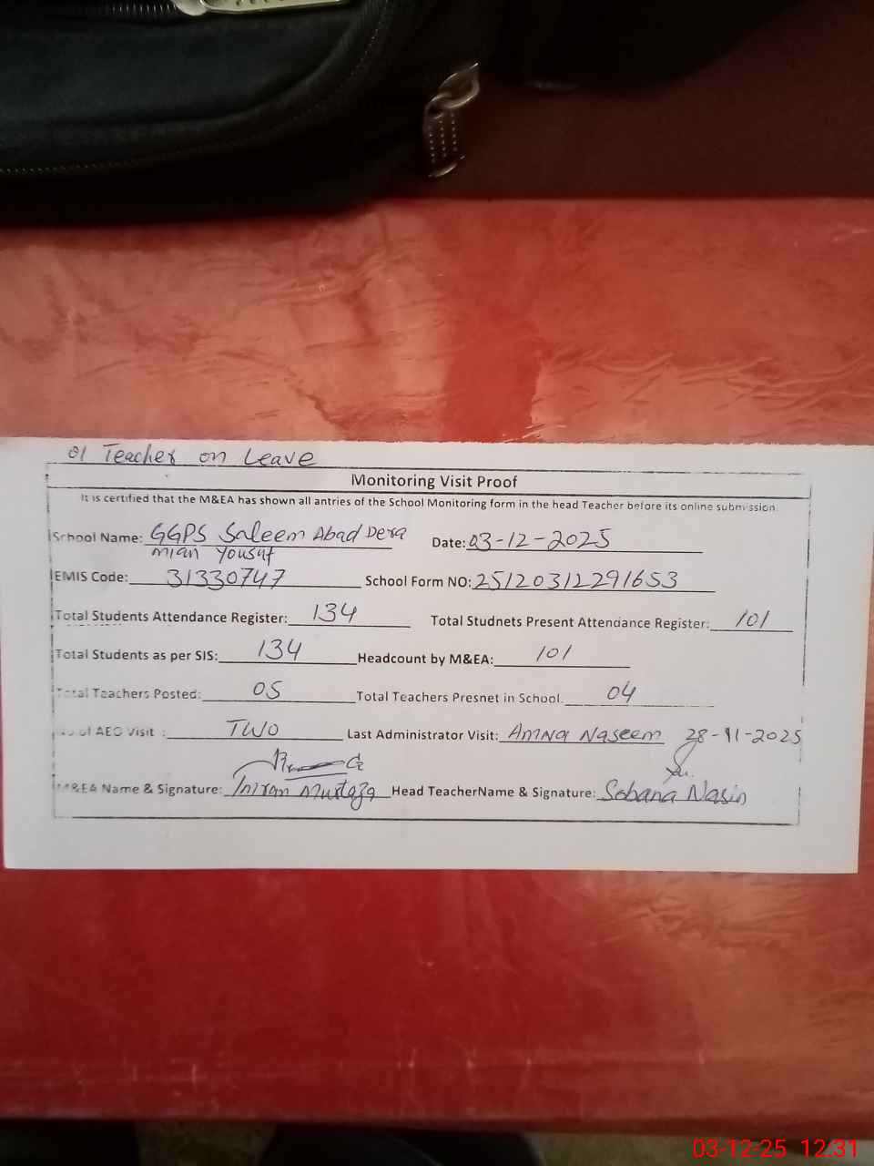 | EMIS Code: 31330747 | Name of School: GGPS SALEEM ABAD (Dera Mian Yousaf Ali 84/p) | |||