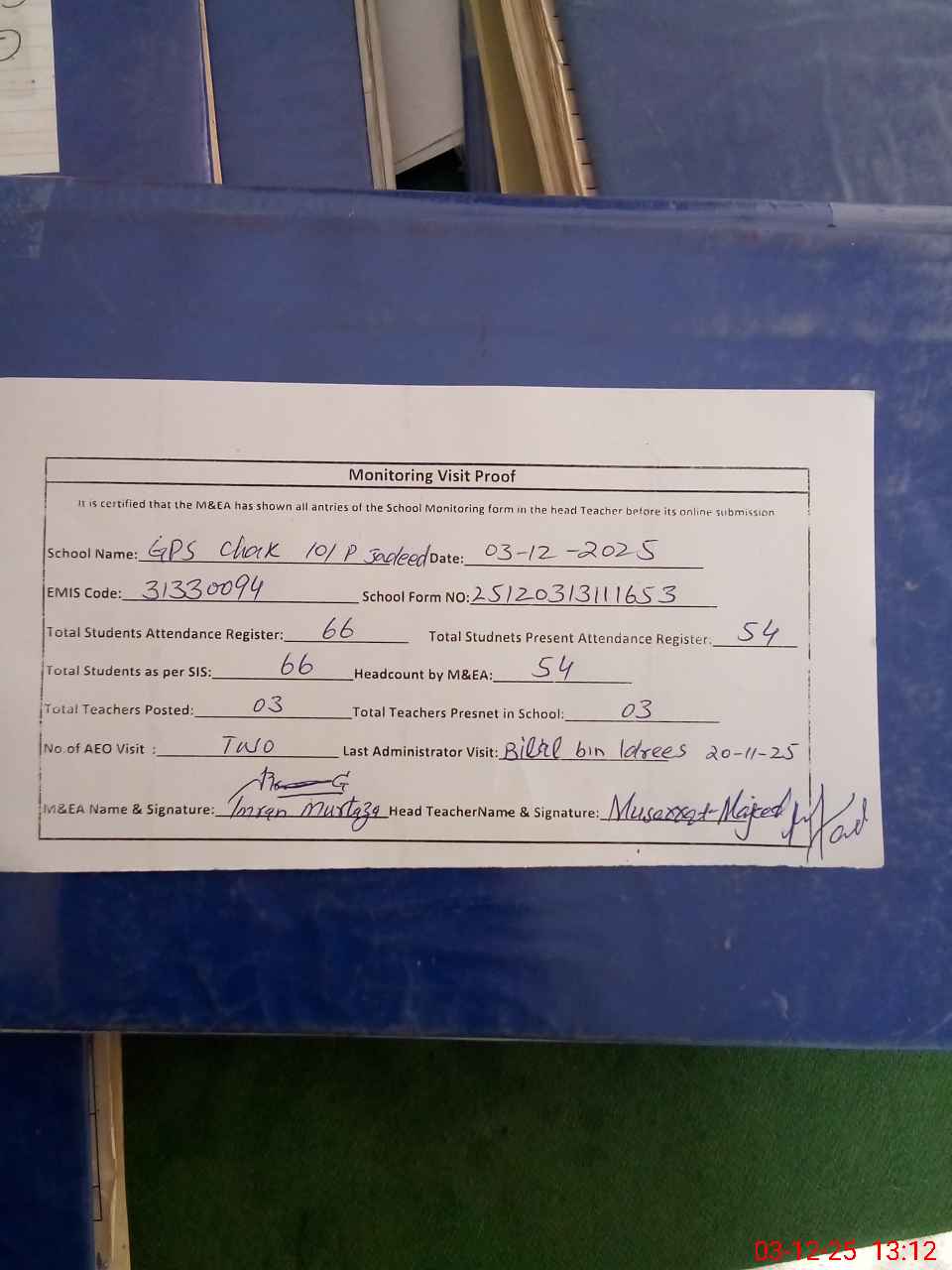 | EMIS Code: 31330094 | Name of School: GPS CHAK 101/P JADEED | |||