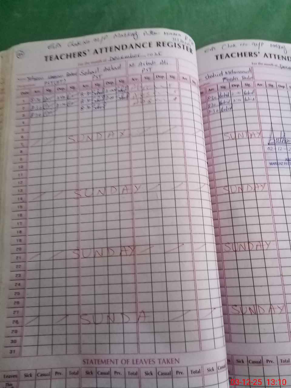 | 31**** | Mu**** Ar**** Al**** | Regular | 0 | 0 | 30 | 0 | 0 | 0 | 0 | 0 | 0 | Absent (Un-Authorized) | |