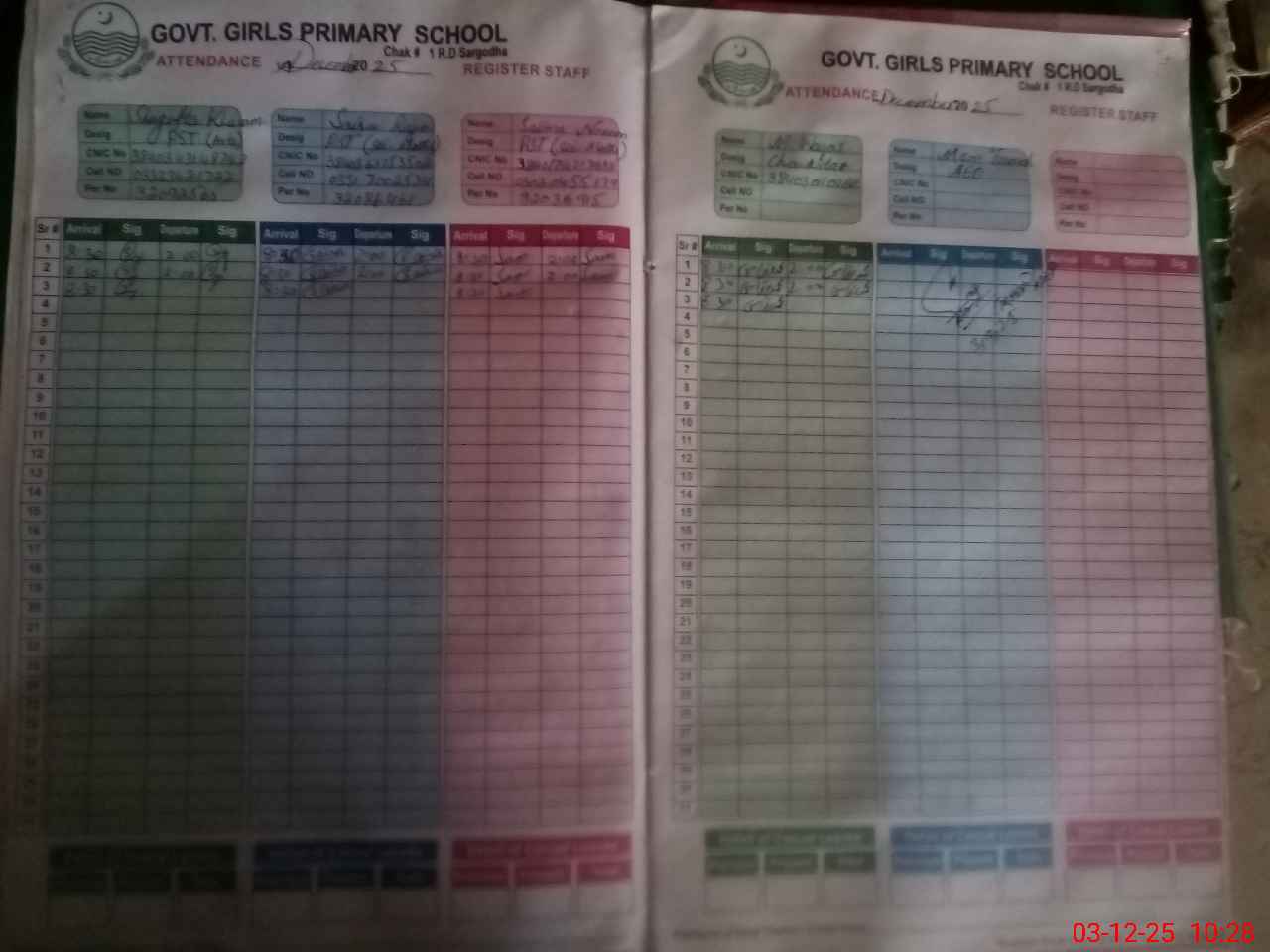 | Name: SH**** Kh**** Designation: (School Headmaster's/Headmistress's) PST Phone/Cell Number: 03**** |