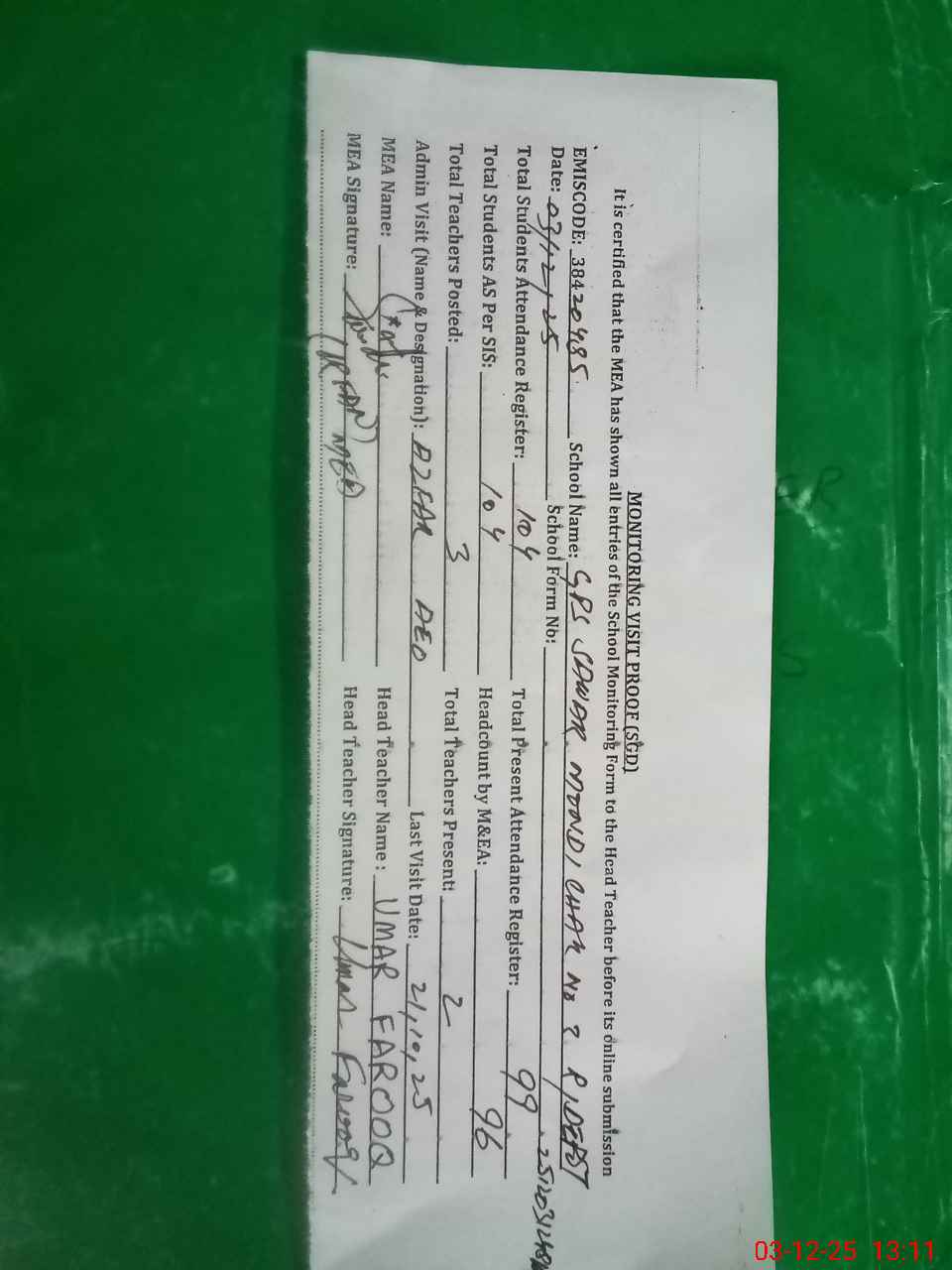 | EMIS Code: 38420485 | Name of School: GPS SAWAR MONDI CHAK NO.8 REMOUNT DEPOT | |||