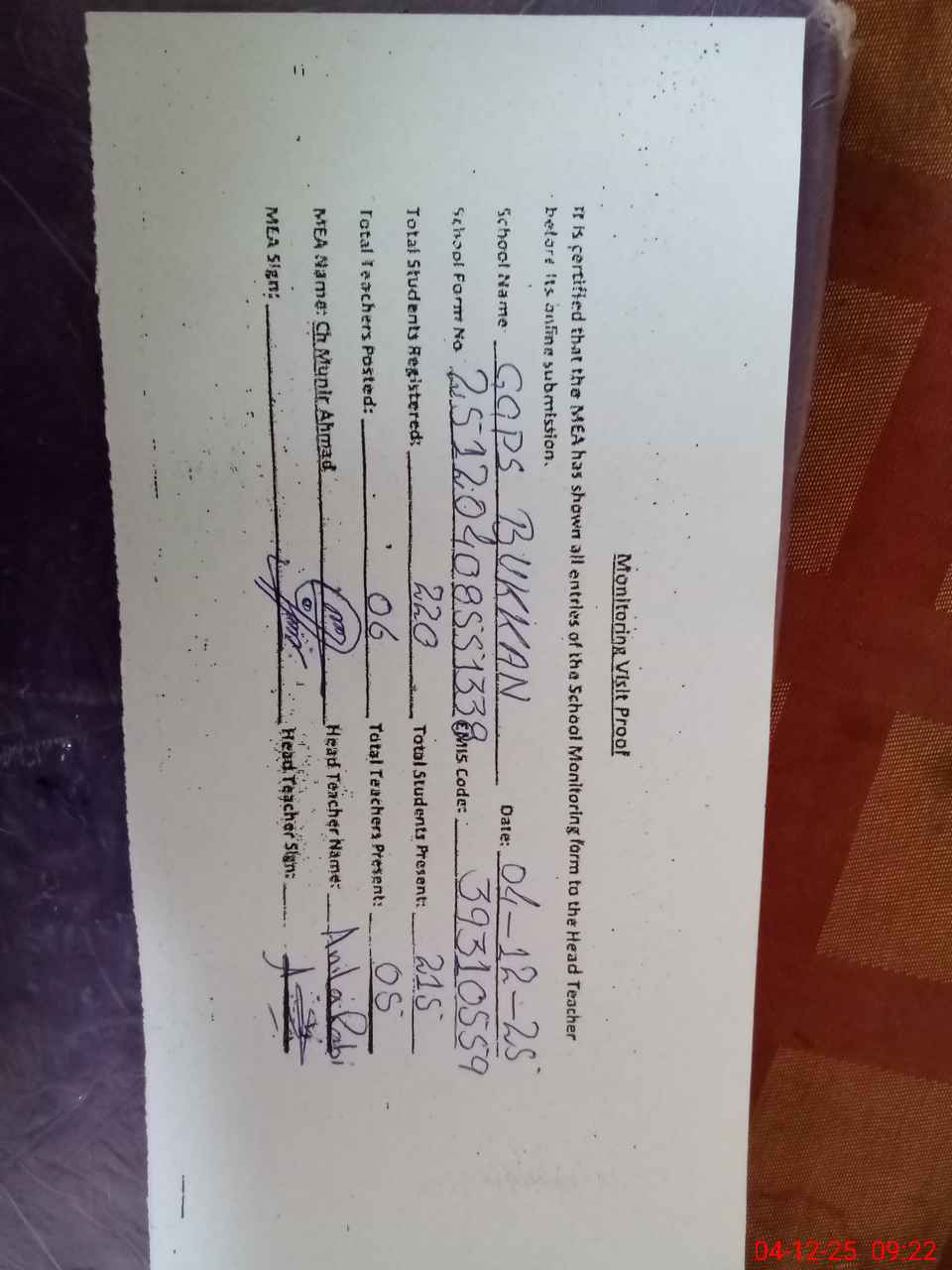 | EMIS Code: 39310559 | Name of School: GGPS BUKKAN | |||