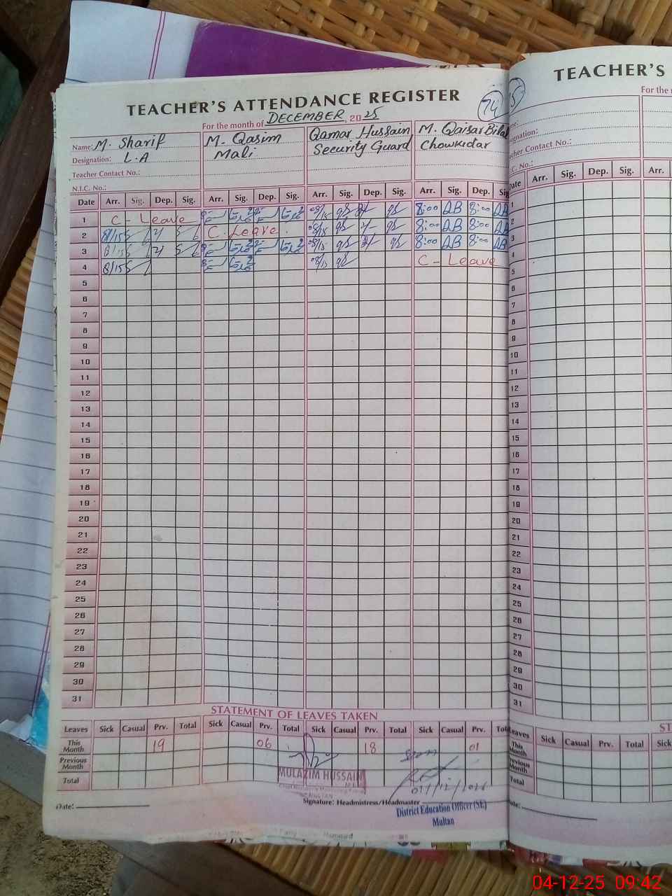 | 00**** | Qa**** | CHOKIDAR | 0 | 0 | 0 | 0 | 0 | 0 | 0 | 0 | 0 | Casual | |