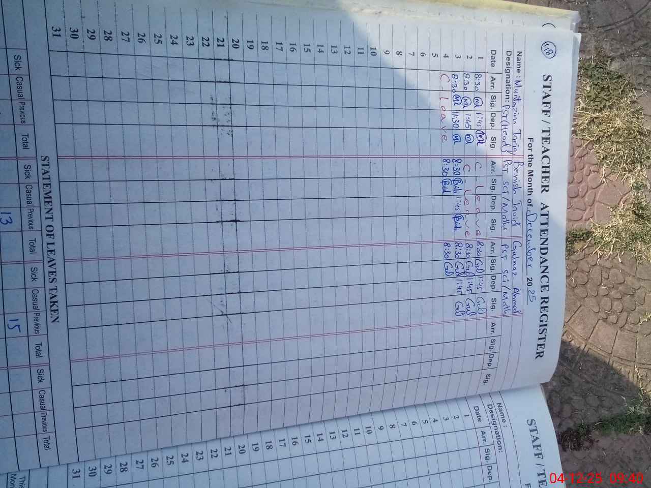 | Name: Mu**** Ta**** Ki**** Designation: (School Headmaster's/Headmistress's) PST Phone/Cell Number: 03**** |