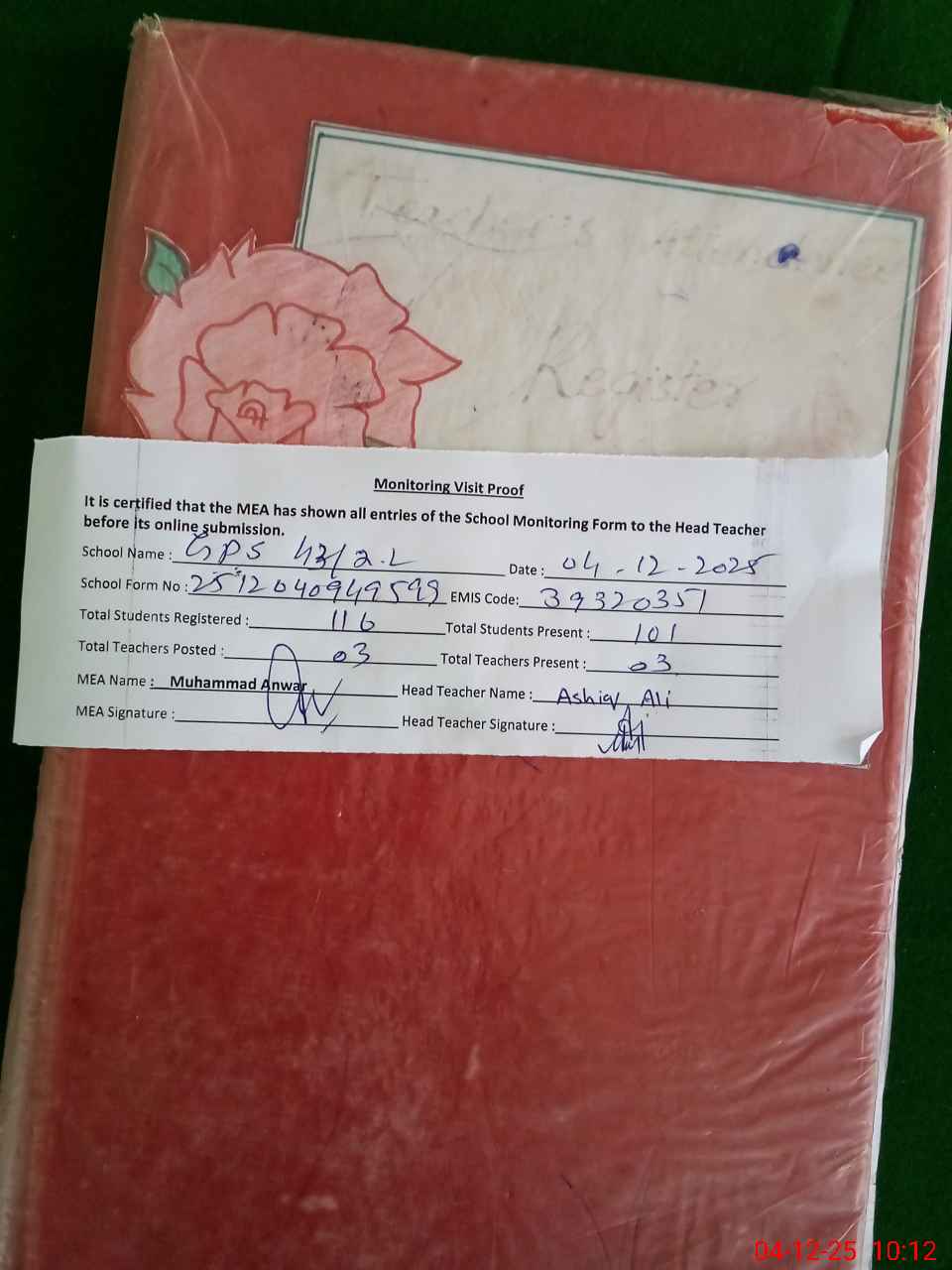 | EMIS Code: 39320351 | Name of School: GPS CHAK 43/2-L | |||