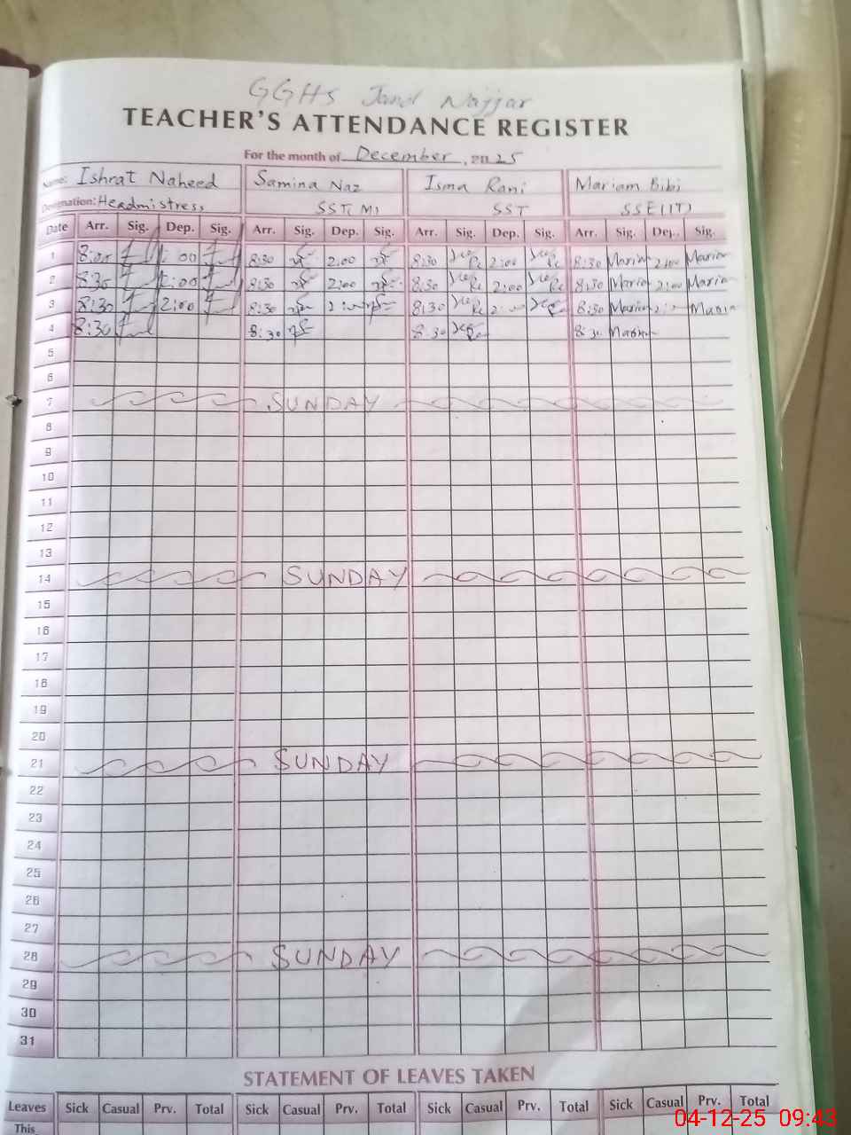 | 37**** | Bu**** Ha**** | EST Science | Regular | 0 | 0 | 0 | 0 | 0 | 0 | 0 | 0 | 0 | Casual |