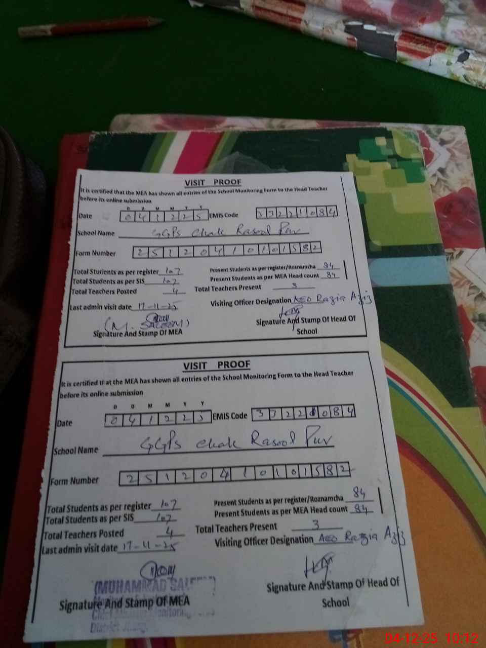 | EMIS Code: 33221084 | Name of School: GGPS CHAK RASOOL PUR | |||