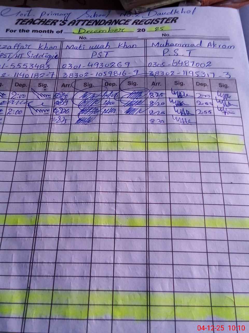 | Name: Mu**** Kh**** Designation: (School Headmaster's/Headmistress's) PST Phone/Cell Number: 03**** |
