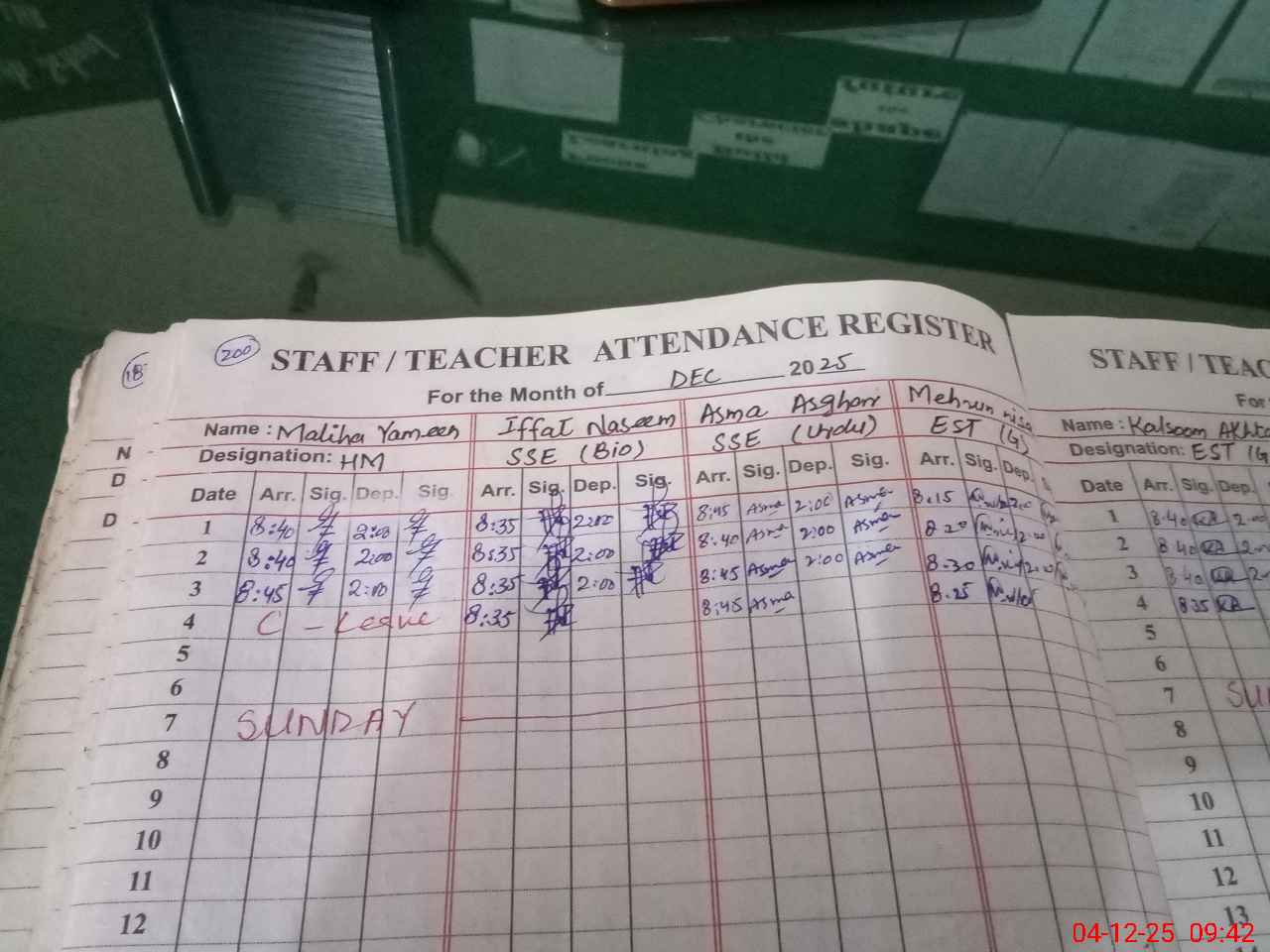 | CNIC | Full Name | Designation | R/C | Absence During Last Calender Month |