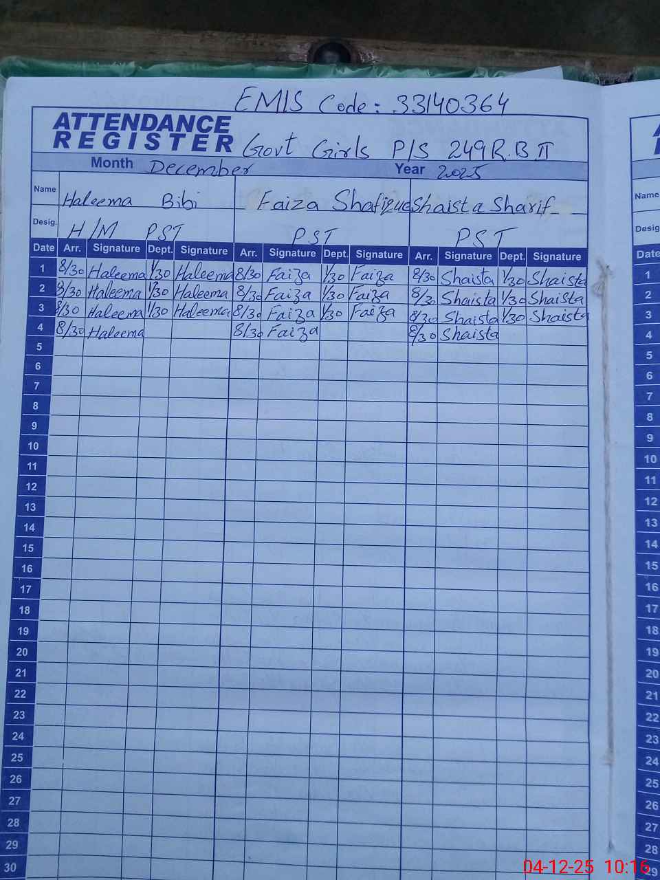 | Name: HA**** BI**** Designation: (School Headmaster's/Headmistress's) PST/PTC/JV Phone/Cell Number: 03**** |