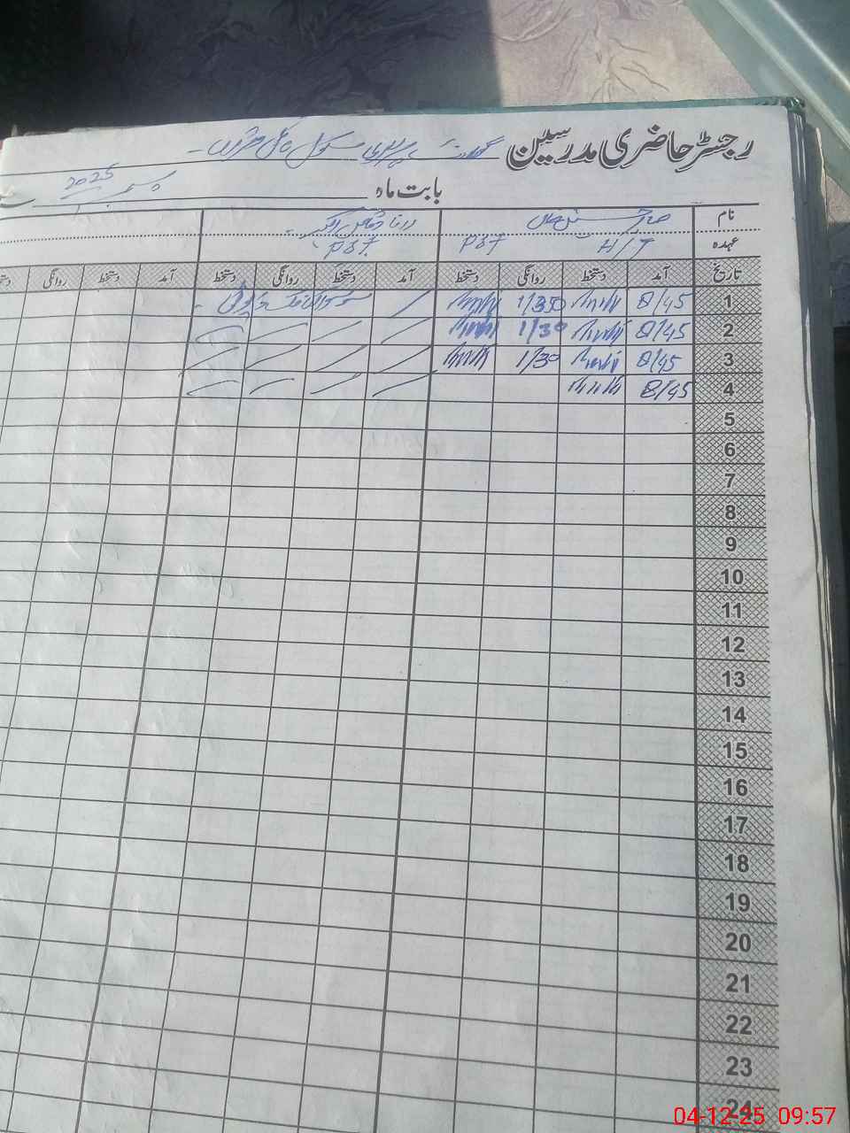| CNIC | Full Name | Designation | R/C | Absence During Last Calender Month |