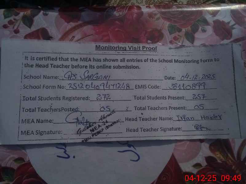 | EMIS Code: 38110899 | Name of School: GPS SARGANI | |||