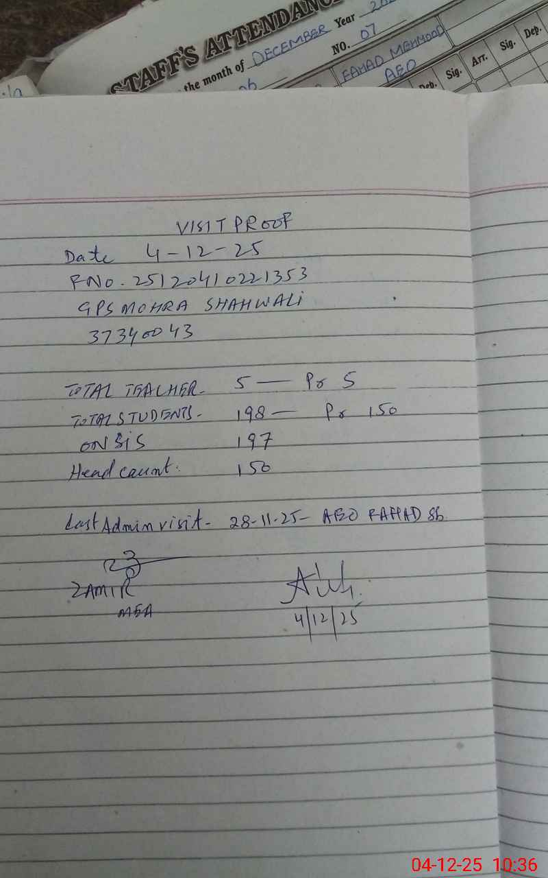 | EMIS Code: 37340043 | Name of School: GPS MOHRA SHAH WALI | |||