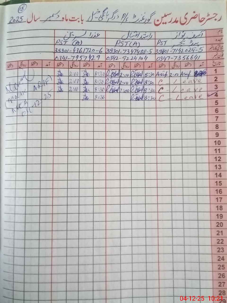 | 38**** | As**** Na**** | PST Science/Maths | Regular | 0 | 0 | 0 | 0 | 0 | 0 | 0 | 0 | 0 | Casual |
