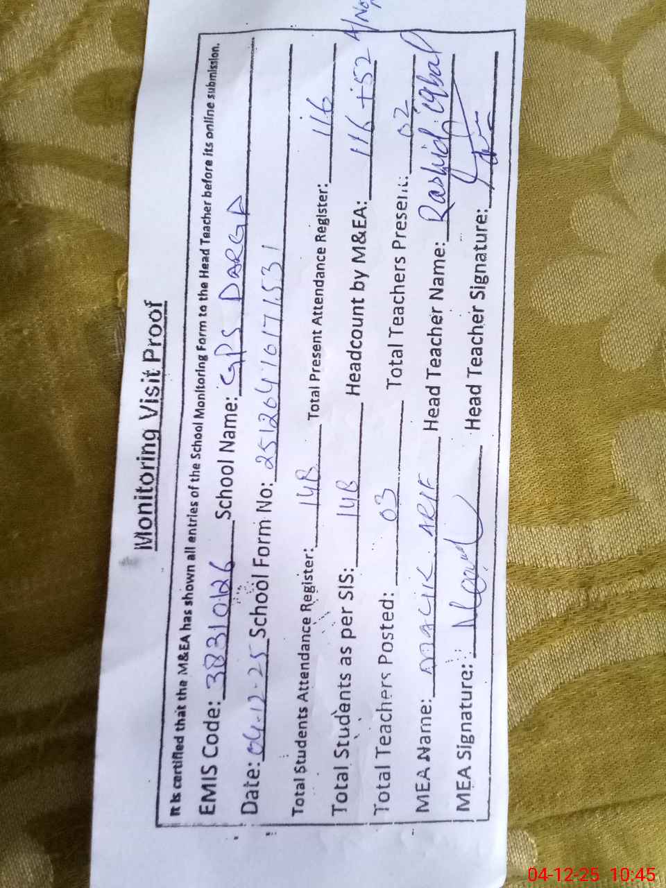 | EMIS Code: 38310126 | Name of School: GPS DARGA BANGI KHEL | |||