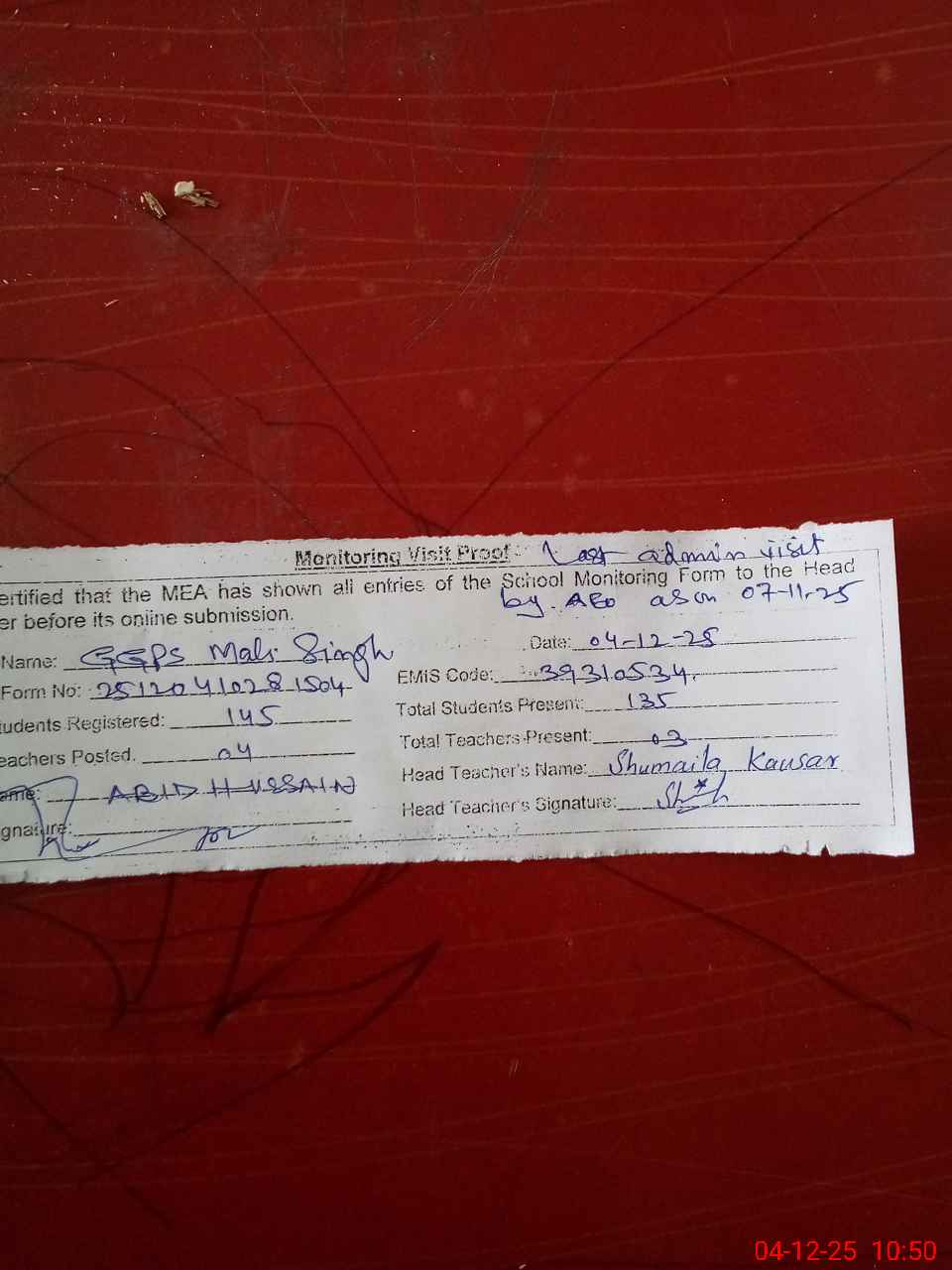 | EMIS Code: 39310534 | Name of School: GGPS MALI SINGH | |||