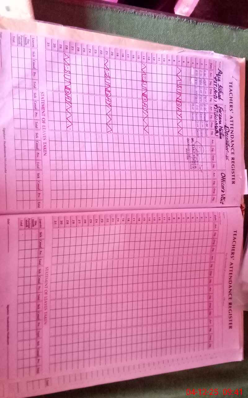 | 36**** | Aq**** Ir**** | PST Arts | Regular | 0 | 0 | 0 | 0 | 0 | 0 | 0 | 0 | 0 | Absent (Un-Authorized) |