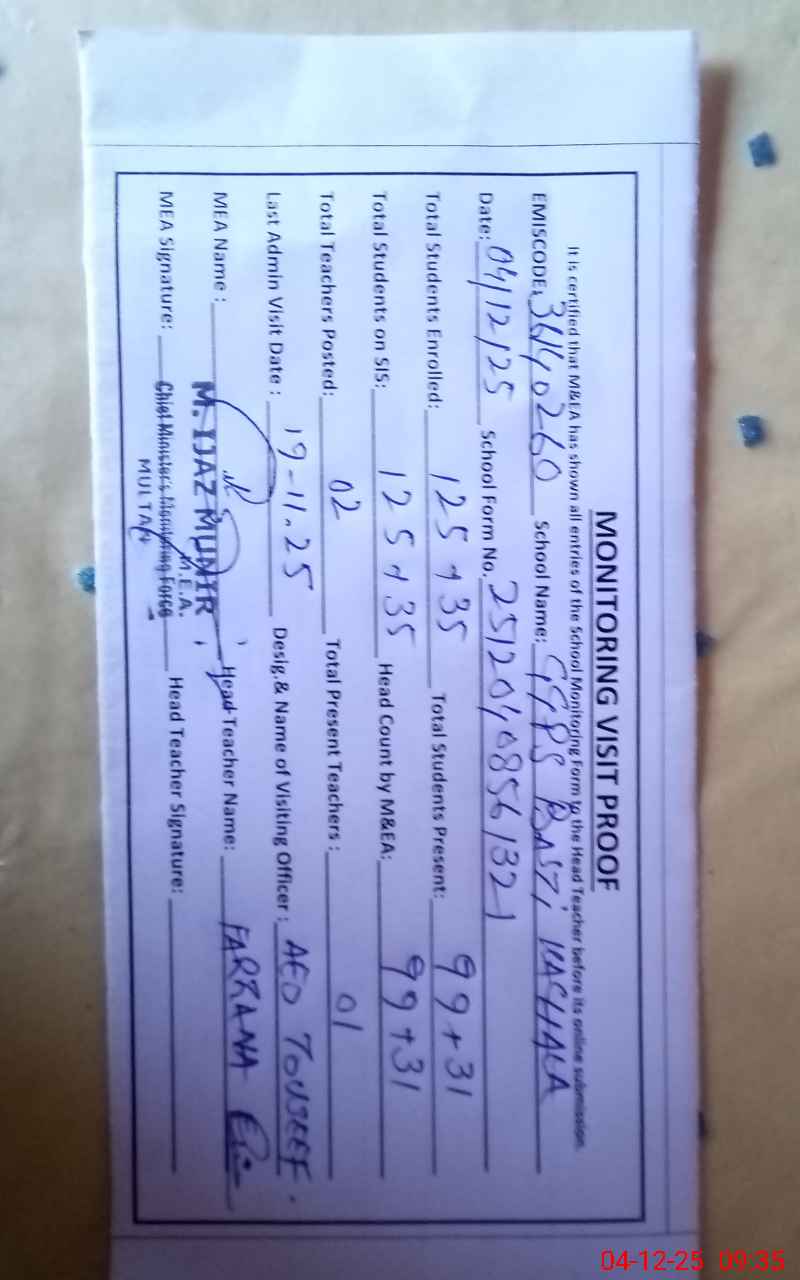| EMIS Code: 36140260 | Name of School: GGPS BASTI KACHALA | |||