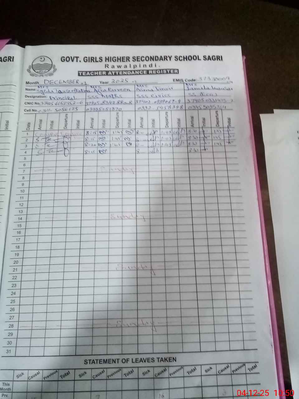 | Name: Sy**** Ta**** Fa**** Designation: (School Headmaster's/Headmistress's) PRINCIPAL Phone/Cell Number: 03**** |