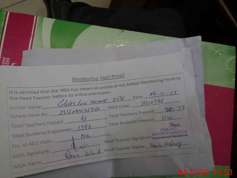 | EMIS Code: 31310796 | Name of School: GGHS LOW INCOME SCHEME KHANPUR | |||