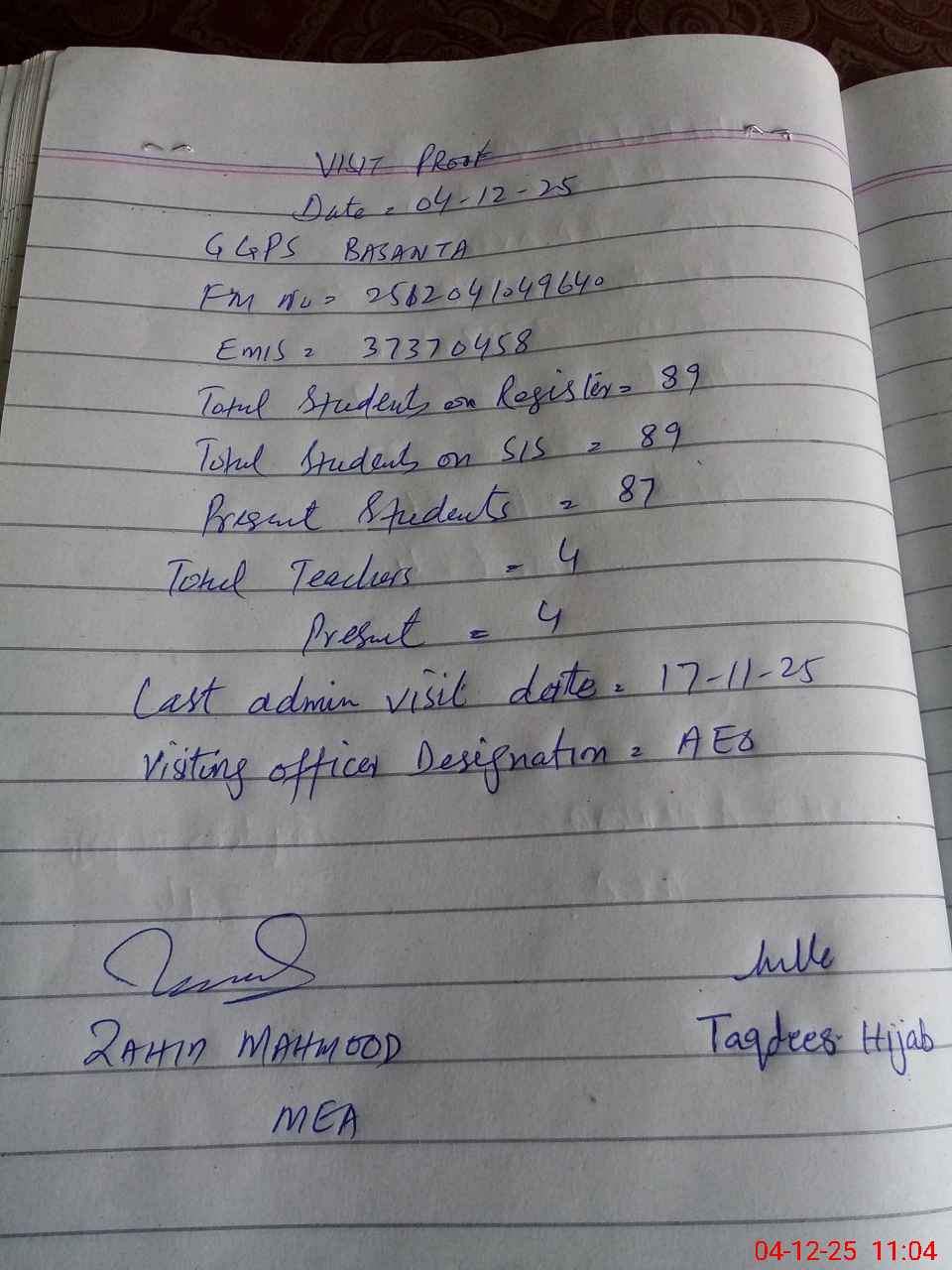 | EMIS Code: 37370458 | Name of School: GGPS BASANTA | |||