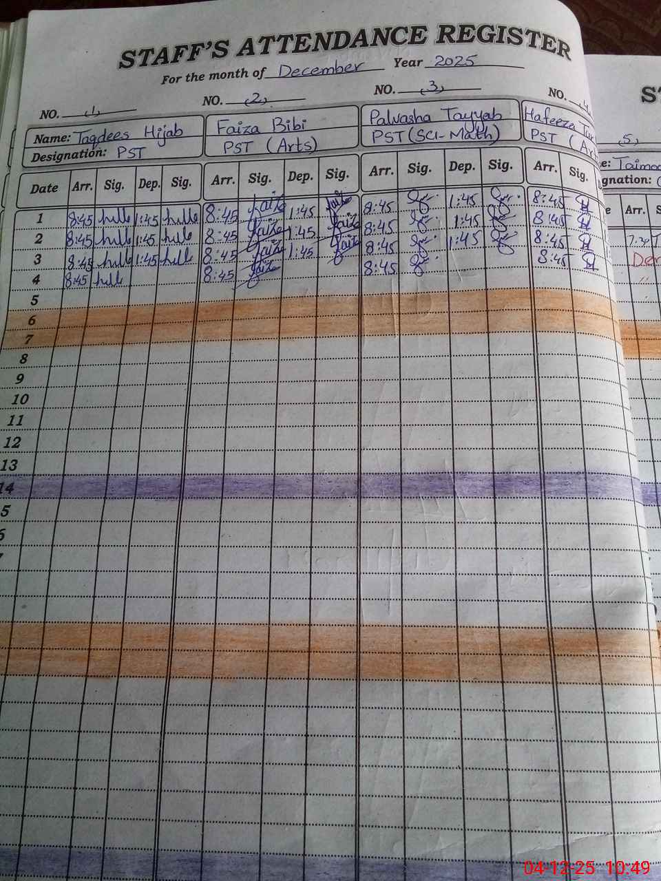 | Name: TA**** HI**** Designation: (School Headmaster's/Headmistress's) PST Phone/Cell Number: 03**** |