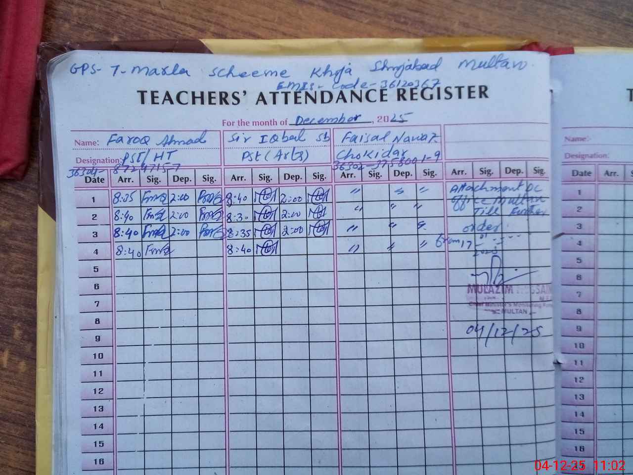 | EMIS Code: 36120367 | Name of School: GPS 7 MARLA SCHEME SHUJABAD | |||