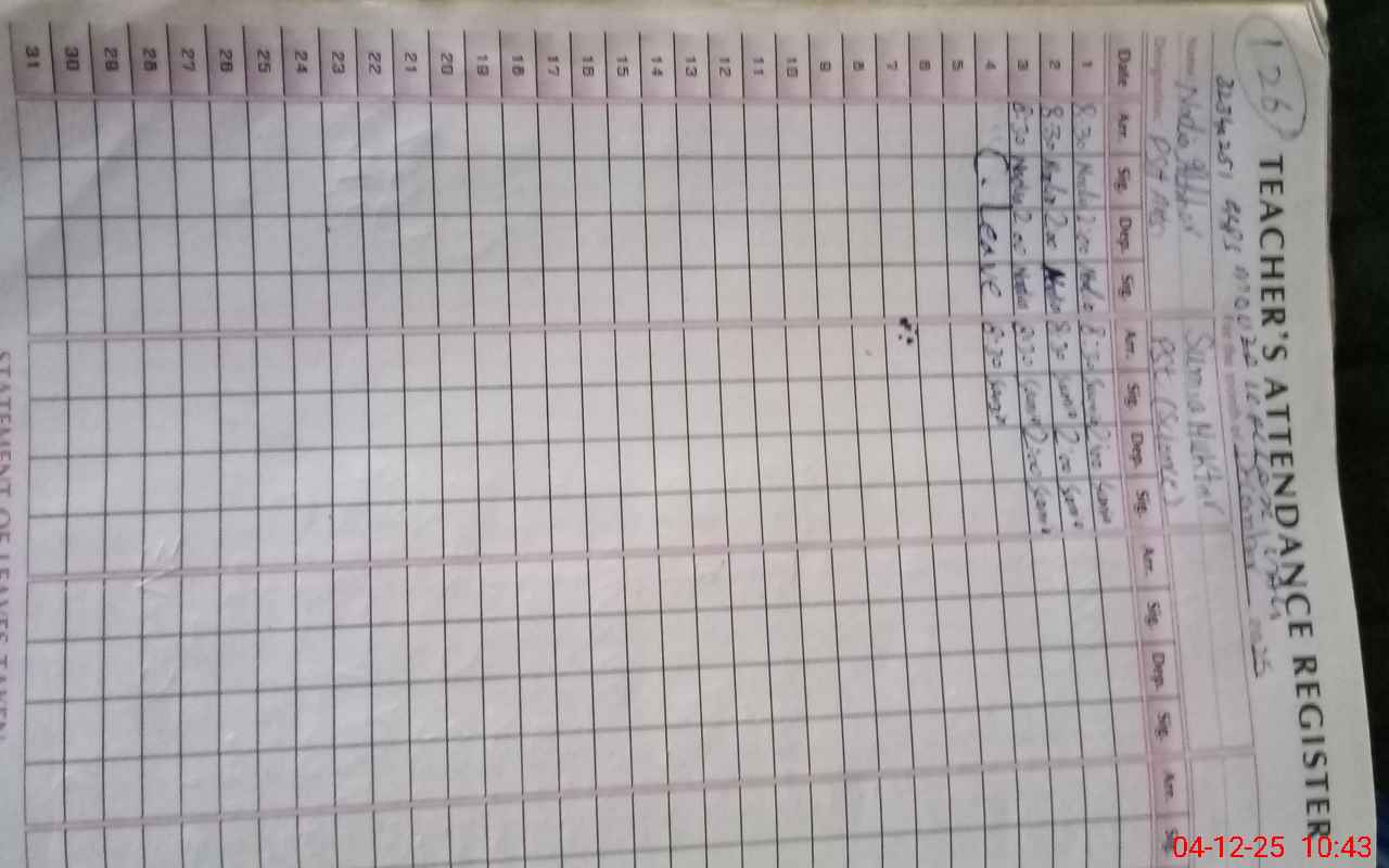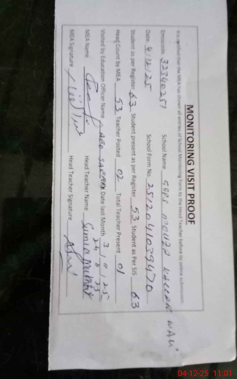 | Attendance Register | Head Teacher | MEA with School | Visit Proof |