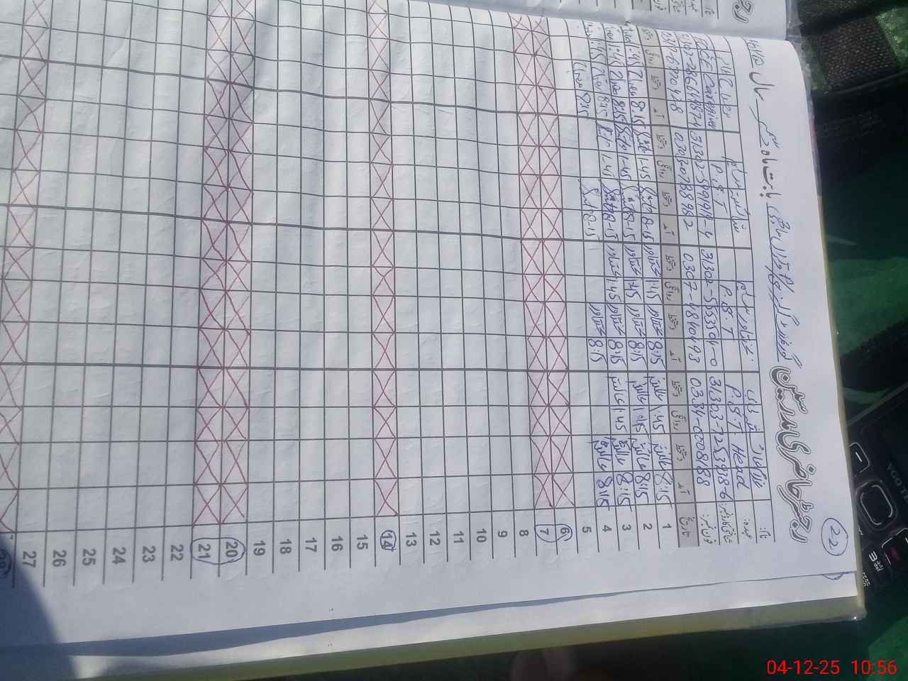 | CNIC | Full Name | Designation | R/C | Absence during last cal. month |