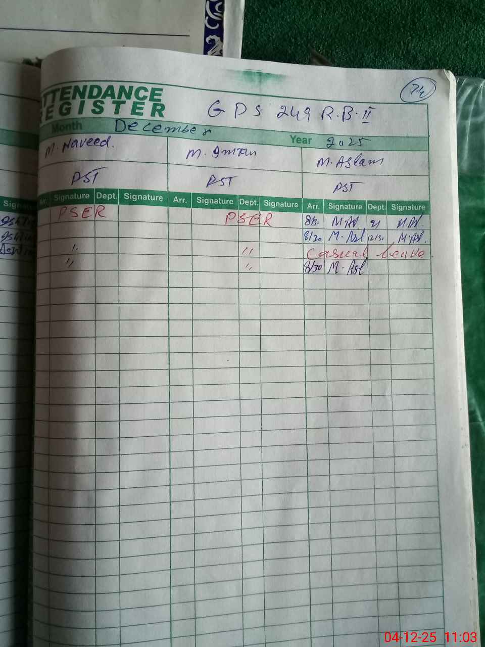 | CNIC | Full Name | Designation | R/C | Absence during last cal. month |